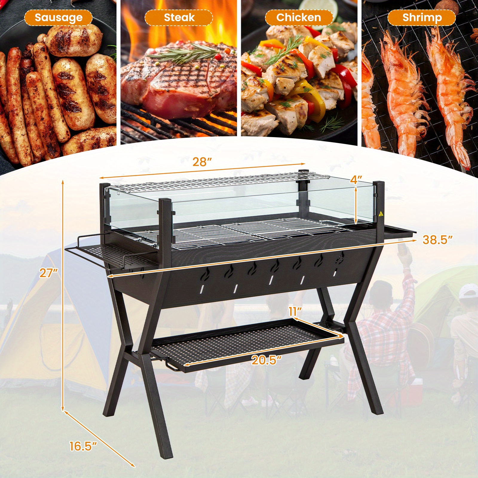 COSTWAY Barbecue Charcoal Grills, Stainless Steel Camping Grill w\u002F Wind Guard, Seasoning Racks & Storage Shelf, BBQ Grill Set with Gloves for Cooking, Camping, Picnic, Hiking